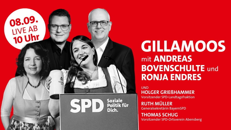 Wir übertragen die Veranstaltung per Livestream auf bayernspd.de und YouTube. Zudem berichten wir direkt von der Veranstaltung auf Instagram.
